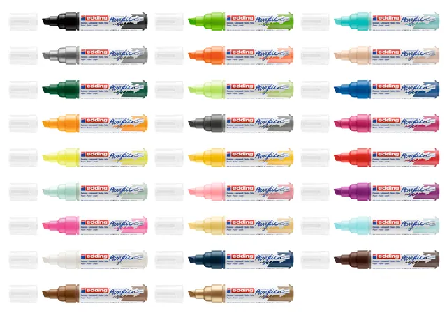 Verkrijgbaar in 26 verschillende kleuren, in verschillende schrijfbreedtes.