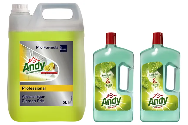 De vertrouwde, krachtige Andy formule neemt vuil en vet snel op en laat geen strepen achter.