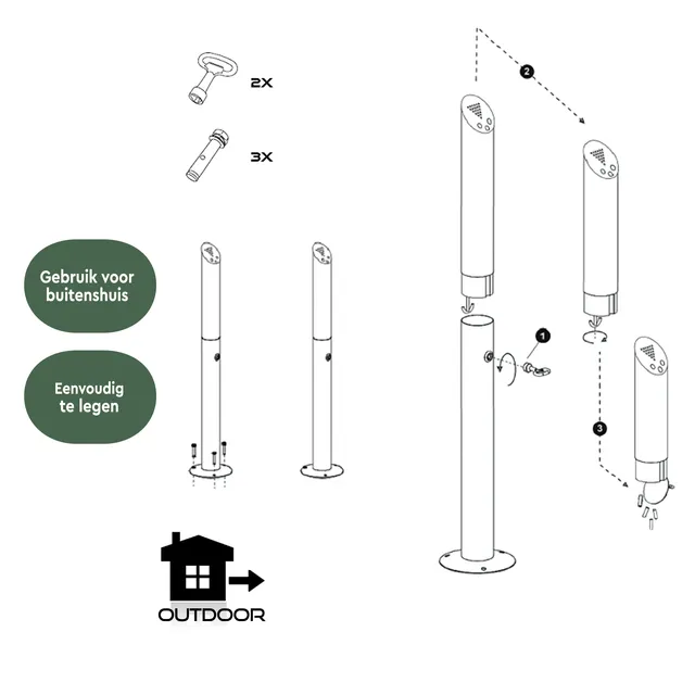 Hygiëne en reiniging: De zuil is zeer eenvoudig en hygiënisch te legen. De staande asbak van BRASQ vangt de peuken op in het onderste gedeelte van de kolom. Door deze constructie, is er een beperkte zuurstof toevoer en doven de peuken snel. Dit komt de veiligheid van gebruiker en omgeving ten goede. Door het klepje onderaan met de sleutel te openen kun je de inhoud gemakkelijk legen. Sluit de asbak vervolgens weer met de sleutel.