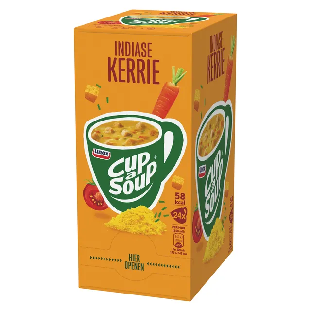 In een verpakking Cup-a-Soup Indiase Kerrie zitten 24 heerlijke zakjes Cup-a-Soup.