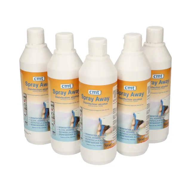CMT Spray-Away Disinfection Alcohol is een oppervlakte desinfectievloeistof op basis van 80% ethylalcohol van zeer zuivere kwaliteit en is speciaal ontwikkeld en getest voor eenvoudige, snelle en effectieve desinfectie.