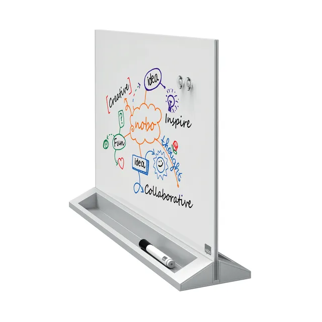Desktop whiteboard met magnetisch oppervlak van gehard veiligheidsglas.