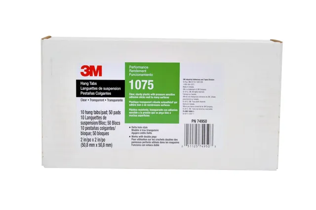 3M™ hang tab 1075 zijn gemaakt om snel te hechten aan een product zodat het kan worden opgehangen in het schap. Deze hang tabs zijn geweldig voor krimpfolie verpakkingen. Ook handig voor het repareren van beschadigde verpakkingen.