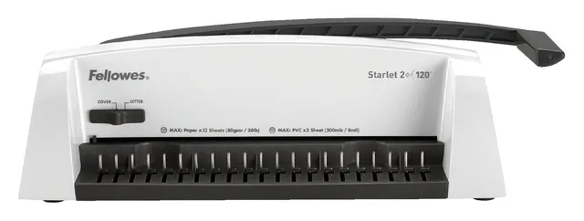 Ponscapaciteit van 10 pagina’s, inbindcapaciteit van 120 pagina’s met een maximale maat bindrug van 16mm.