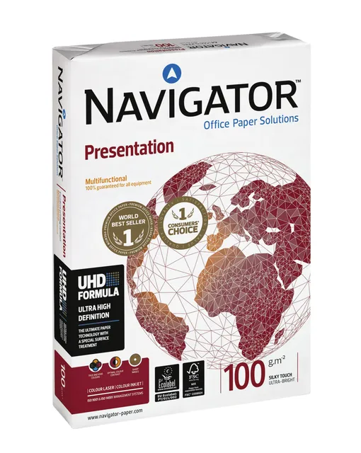 Navigator Presentation is een schitterende universele hoogwitte papierkwaliteit en wordt vervaardigd met behulp van de nieuwste technologie op het gebied van papierproductie.