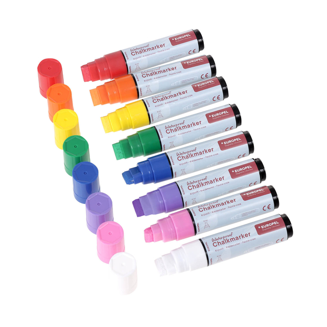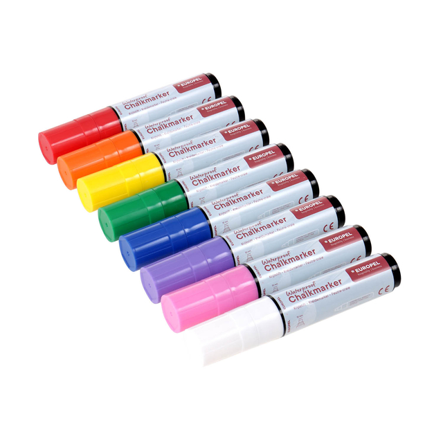 Ontdek de watervaste krijtstiften 15mm in een 8 kleuren assortiment etui, perfect voor al je creatieve projecten.