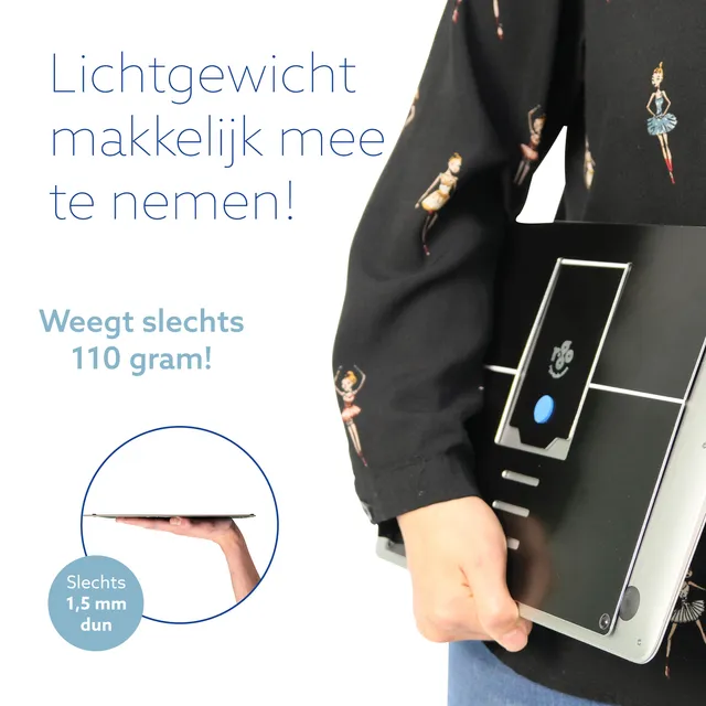 De R-Go Riser Attachable laptopstandaard is een ergonomische aanvulling op elke laptop. Deze laptopstandaard van vliegtuigaluminium is slechts 1,2 mm dik. Hij brengt je laptop snel en eenvoudig op de gewenste hoogte en is verstelbaar in 4 standen. De R-Go Riser is ultra dun en licht van gewicht. Omdat hij vastzit aan je laptop, zul je de standaard nooit vergeten om mee te nemen. Zo werk je overal in een gezonde houding!