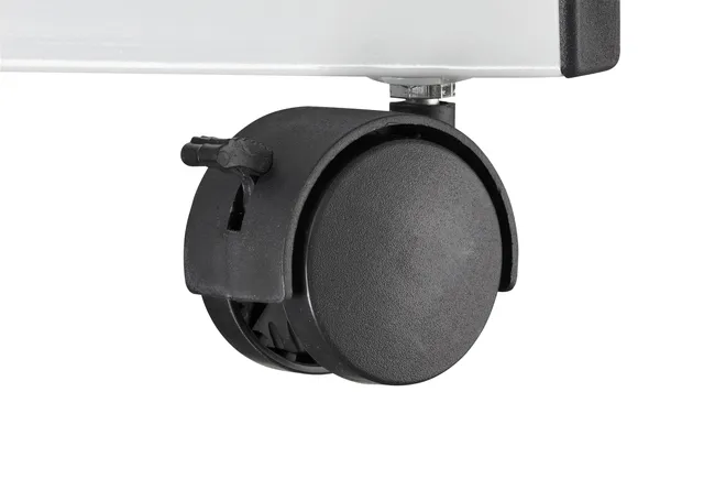 Mobiel: Met vier zwarte wielen waarvan er 2 voorzien zijn van een rem.