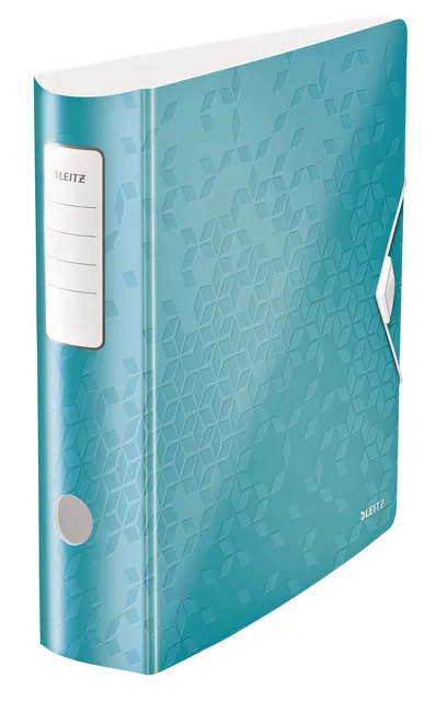 Innovatieve ordner in levendig WOW-ijsblauw met dubbel kleureffect. Lichtgewicht materiaal en ergonomisch design voor eenvoudig gebruik van documenten, onderweg en op kantoor.