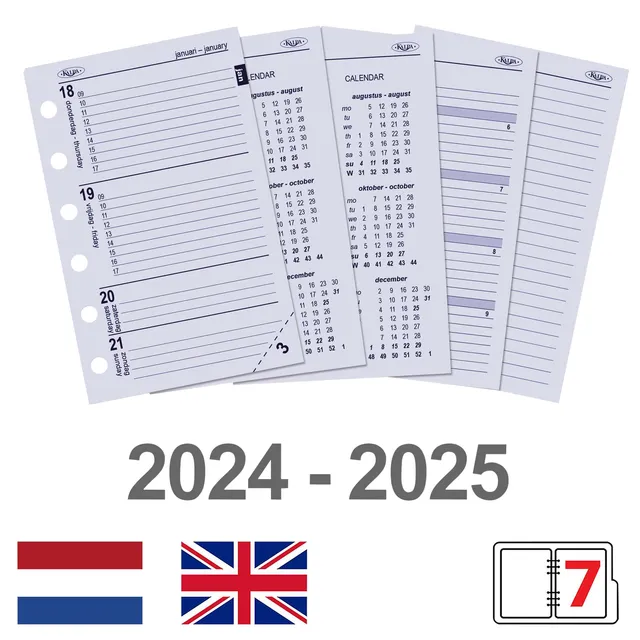 Pocket navulbare agenda heeft een meerjarige agendavulling van 1 week op twee pagina’s. Dankzij het stevige ringmechanisme kunt u de indeling van uw agenda gemakkelijk aanpassen aan uw manier van werken. U kunt essentiële notities in uw organizer achterlaten wanneer u later een nieuwe kalendervulling toevoegt.