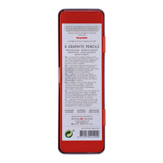 Het blik bevat 6 hardheden: HB, 1B, 2B, 4B, 6B, 8B.