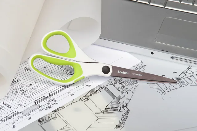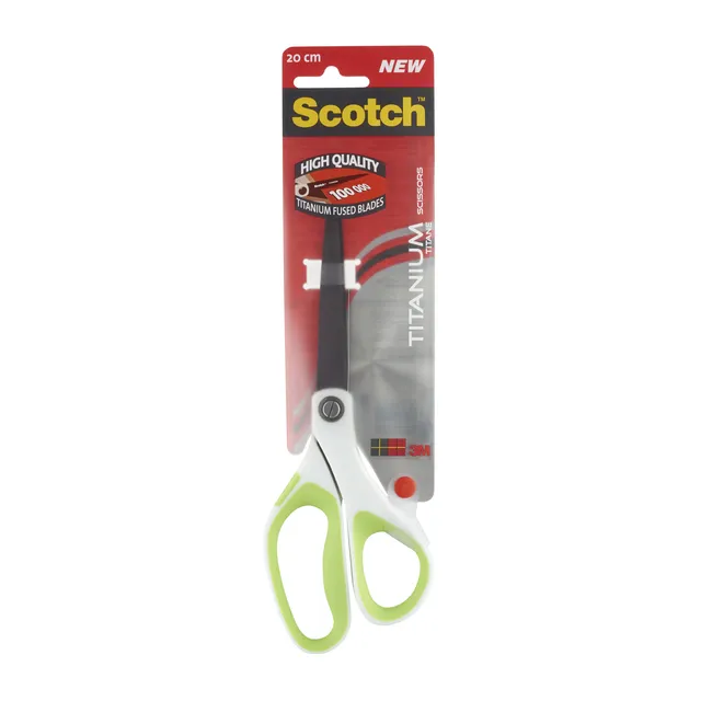 De Scotch™ titaniumschaar is ideaal voor stof, handwerk en foto’s. De met titanium gesmolten snijbladen blijven scherp na 100.000 keer knippen. Zachte, comfortabele vingergrepen, ontworpen voor links- of rechtshandig gebruik.