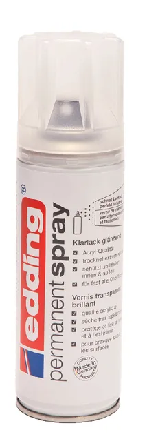 De kristalheldere edding Permanent Spray transparante lak zorgt voor een perfecte afwerking van je pas gelakte objecten.